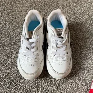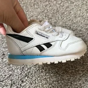 Classic leather running shoes infant size 6 white black and aqua