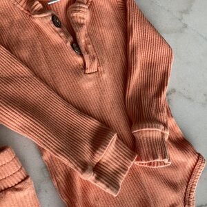 Adorable gender neutral set. light orange. gently used. very slight discoloration on right knee (see last picture). size 9-12 months.
