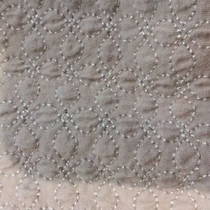 Has a white headpiece outline with the rest of the piece being tan. Body can be reversed to make it all white. Picture of some stained spots are included on the headpiece.