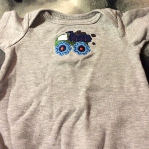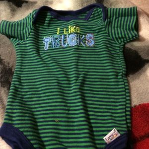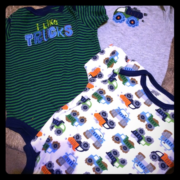 Here is three all together ( they came together). There a gray one with a little blue dump truck. One covered in dump trucks. And a green striped one that says "I Like Trucks"! They all have three snap buttons. Never Worn!!