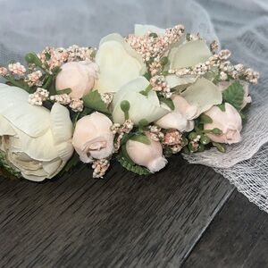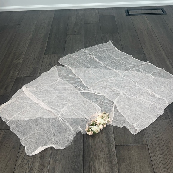 Used once for a photo shoot. A netlike shaggy thin wrap that is absolutely gorgeous when on. This is itch free, when wrapped multiple times around infant it is not see-through and easy to tie,has a beautiful stretch headband with a beautiful floral appliqué. Last picture posted was a professional photo of my baby with the blanket on. I did not post the face for privacy reasons. No rips or stains, feel free to bundle with other items for better pricing.