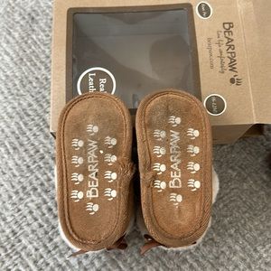 Pre-owned infant shoes. Lucky Brand is size 2 (3-6Months) and the Bearpaw boots is 6-12months