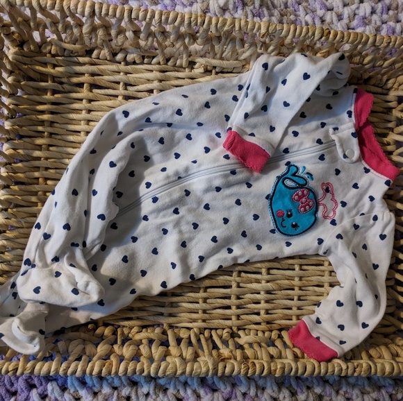 White with blue hearts and pink trim with a blue whale.