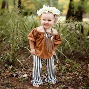 Infant Hobo Hip Set / Striped Bellbottoms with off shoulder Top