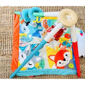 Babies will go gaga for this soft, inviting play space. Encourage new skills such as visual tracking, reaching, grabbing, tummy time, and rolling with repositionable toys, and pillow. Folds up so you can take a clean, engaging play space with you wherever you go.