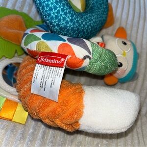 Delight your little one with the Infantino Fox Rattle Toy. This adorable toy features vibrant orange and blue colors, perfect for engaging playtime. Soft and cuddly, it's designed to stimulate your child's senses.