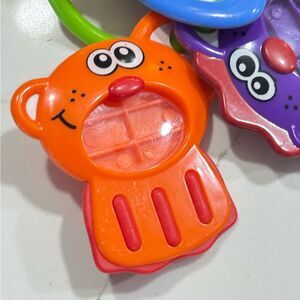 The object is a Musical Teething Photo Buddies rattle toy by Infantino. It is designed for babies and features: