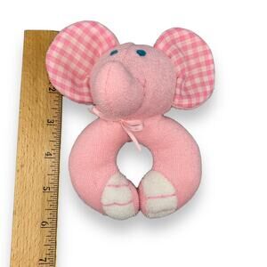 Infantino Vintage Terry Cloth Elephant Baby Wrist Rattle Pink Gingham 1996 6"
