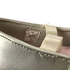 Infants Silver Double Ruffle Ballerina Flats with elastic strap. Lined in pink