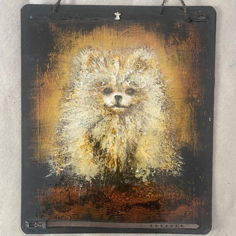 Acrylic paintings of a white Pomeranian dog as a delightful celebration of this adorable breed. I tried to capture Infinity’s unique characteristics and personality, making it a cherished piece of art for any dog lover.