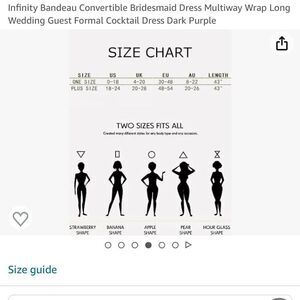One size: One size = US 0-16. One size Plus = 18-24 infinity bridesmaid dresses fits different body types and sizes