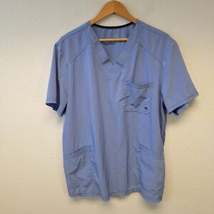 Infinity Cherokee V- Neck Men's Scrub Top Rib Knit Back Panels Blue Men's Sz XL