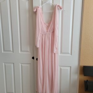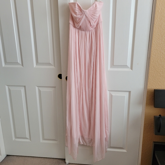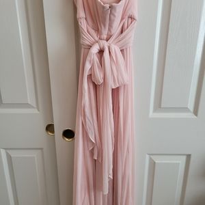 Worn once. Dress can be worn multiple ways, thats why there's longer pieces. I wore this strapless and tied the straps back into a bow. I dont remember all the ways it can be worn. So you will have to experiment and play with it.