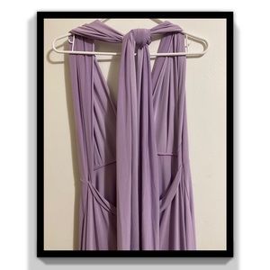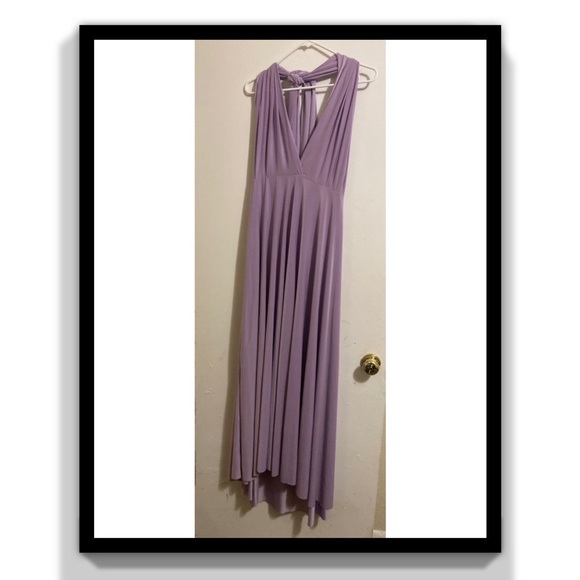 Women’s infinity dress. Can wear it over 100 different ways. Color is lilac. Size is 2x but can fit smaller or bigger, it’s stretchy soft material. Wore it once for a wedding and don’t plan on wearing it again. It’s a high low dress showing ankles and goes down to bottom of my feet I’m 5’5” and 1/2 ft tall, shoes were about two inches that I got it fitted to.