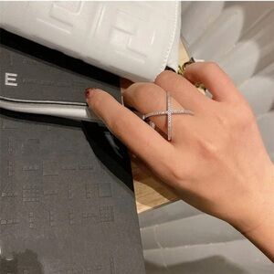 Asseen 925 Sterling Silver Ring Elegant Large X Shape & Form Open Cz Silver Ring Nice Open Style Design Ring. X Shape & Form Ring.