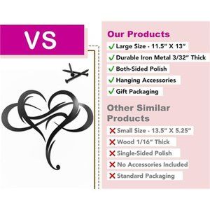 🧿RUSTIC CHARM TO ANY ROOM - ViveGate infinity heart wall decor metal comes pre-finished in black. Place it in your hallway, kitchen, bathroom, bedroom, near the TV, pictures or painting