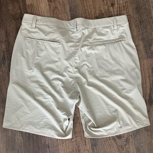 Sleek light tan shorts with a modern flat front. Comfortable fit.