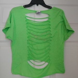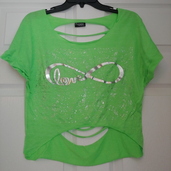 Neon green infinity love crop top with slits in back