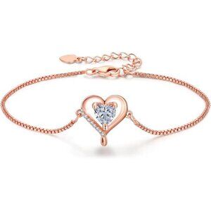 The bracelet showcases an elegant design, featuring a heart inlaid with sparkling 5A cubic zirconia stones. A smaller zirconia stone complements the main stone, symbolizing love and affection—making it a perfect gift for loved ones.