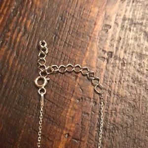 I believe the material it’s pleated rhodium (Jewelry plated in rhodium is shinier and more durable than other metals. Rhodium plating does not scratch, dent, or corrode and retains its luster.)