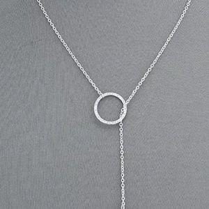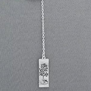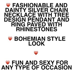Simplicity speaks volumes. Circle is adorned with rhinestones. Followed by a pretty tree detail hanging pendant. Total length is 20". Made of alloy silver. Designed to last. Just clean with a cloth.