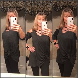 Infinity Raine Charcoal and Wine Cold Shoulder Tops