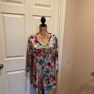 Fall Paisley print leggings. 92% polyester, 8% spandex. Fits size 2-12 comfortably. Waist band 1 1/2” in width and rise is 12”.