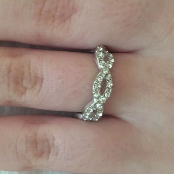 Adorable Ring with faux diamonds on sliver metal. Unworn. Thank you:)
