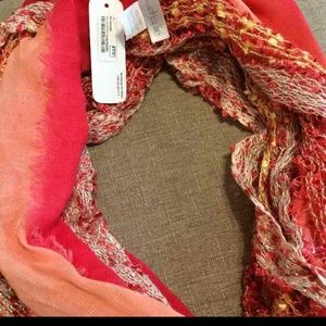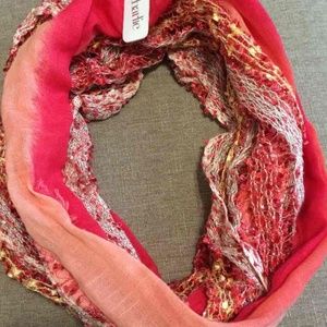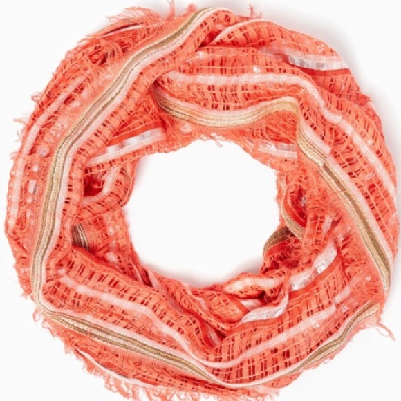 NWT. Charming Charlie coral ombré metallic fringe infinity scarf. 50% polyester. 50% viscose.