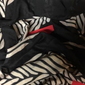 Nice large scarf, when lying flat it is 34 inches wide ( that is doubled) and 44 inches long, the stripe pattern is horizontal