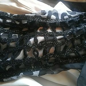 Black and grey Mixit infinity scarf. Spotted leopard print mixed with black open-knit pattern- blends together well, and surprisingly warm!