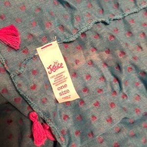 Super cute blue scarf with Purple Hearts