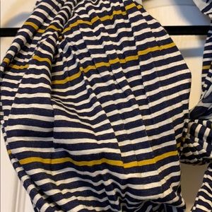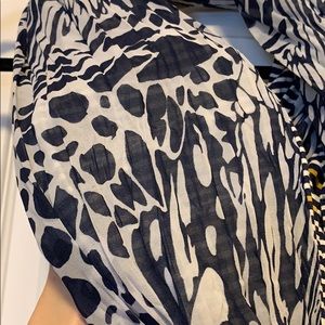 Scarf with two prints - stripped one side and a sheer animal print on the other.