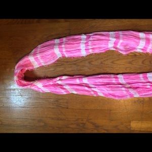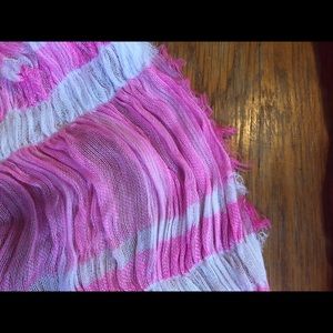 Pink and white fashionable infinity scarf. Not intended for warmth.