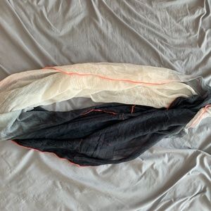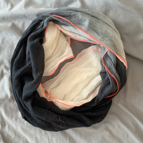 grey, white, and pink infinity scarf, like new and comfortable, thin material