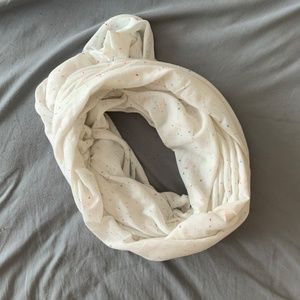 White infinity scarf with multi-colored dots, thin material, like new