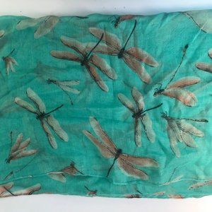 Pastel colored dragonfly motifs on a mint green background (the picture portrays it to be more blue), viscose material.
