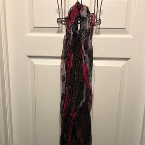 Pink/black/orange patterned infinity scarf. Never worn. Close up of pattern in pictures. Offers welcomed.