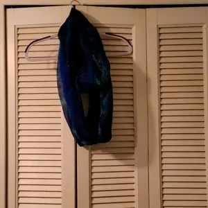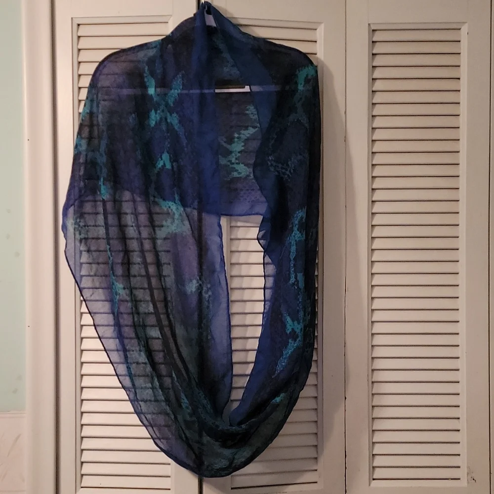 Snake skin pattern infinity scarf. It's a beautiful blend of blues, greens and teals. These are my favorite colors but I have too many scarves!