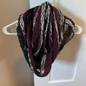 Burgundy/black/silver striped infinity scarf. Worn but in great condition!