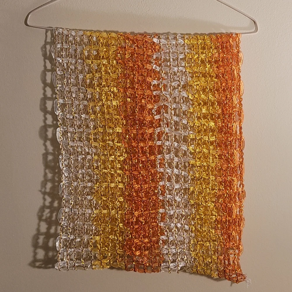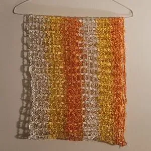 NWOT Scarf; gold threading; crochet 3 feet long but doubled (6 feet)