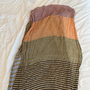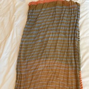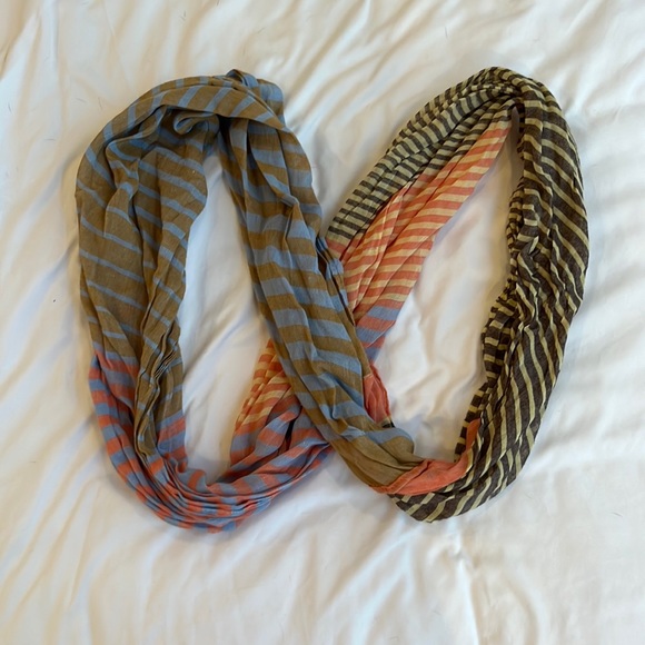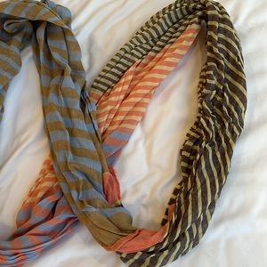 Striped infinity scarf with light blue, organge, cream, brown colors