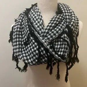 Has fringe around the edges of the scarf