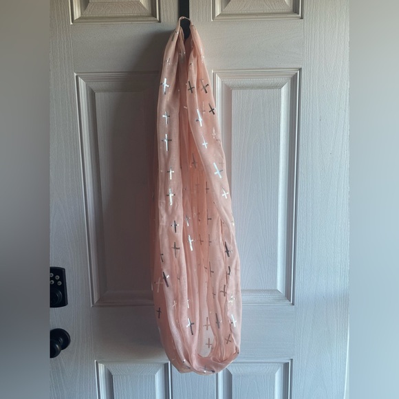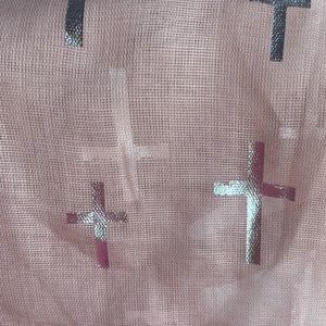 -Light pink with silver crosses