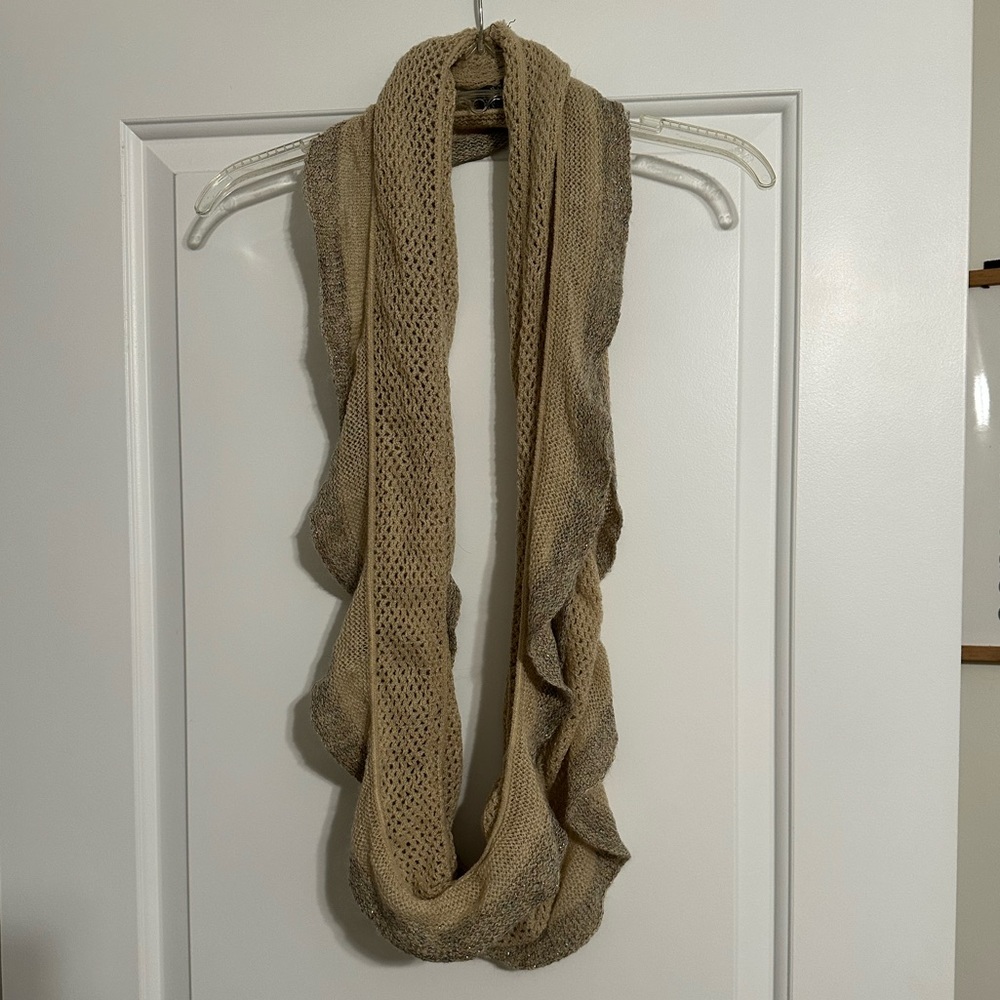 Cute ruffled infinity scarf with hints of sparkle in the material.