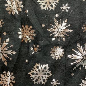 Beautiful 100% polyester black infinity scarf with silver snowflakes