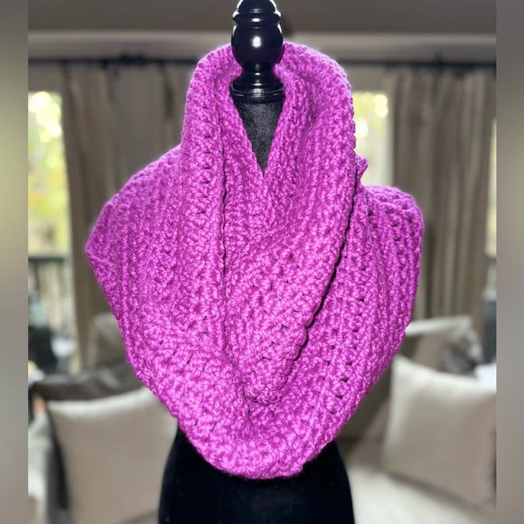 When your hobby becomes a habit! E.C.C. infinity scarves are handmade with love. It can be worn in many ways and is great for keeping warm in cold weather. Composition: 80% acrylic, 20% wool (wheat - 86% acrylic, 10% wool, 4% rayon). Care: Machine wash and dry. Sales are final for sanitary reasons. (12)