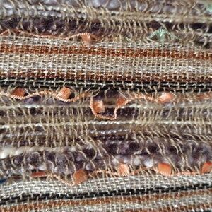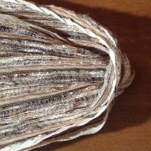 Lightweight. On a beige/gold tone with tiny blips of color init. Boho. In used condition--selling my scarf collection.