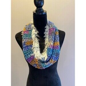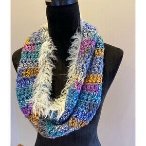 Infinity Scarf Chunky Knit Faux Fur Edges Purple Blue Green Pink Boho Stylish