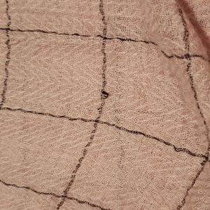 Purchased from a local boutique. ~36" x 37". Smoke free, cat free home. We do have dogs. One small pull. Really soft and comfy!